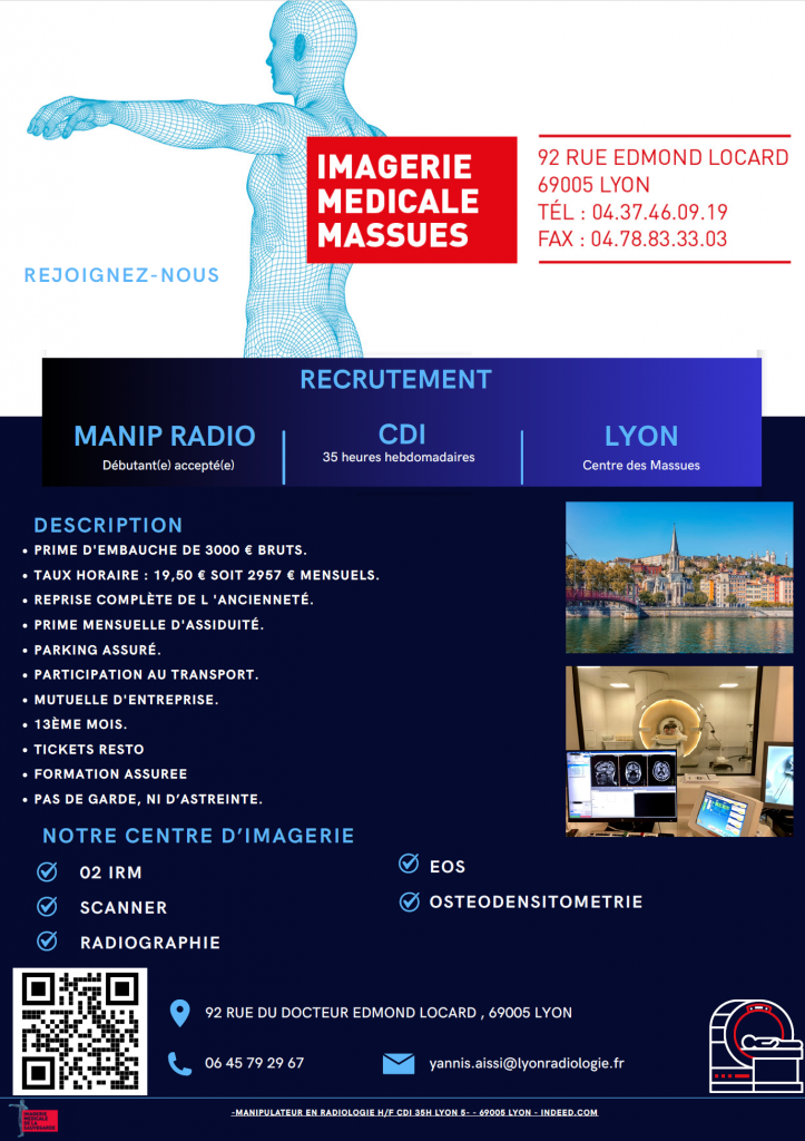 L’Imagerie Médicale des MASSUES ( LYON 5 ) recrute un(e) manipulateur(trice) en imagerie médicale en CDI.